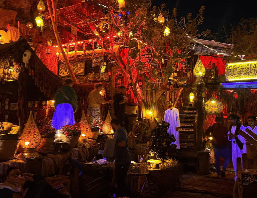 The Tour guide will pick you up from the hotel and return you after the tour. Morning - Explore Sharm El Sheikh on a private guided tour of the city’s most iconic spots. Walk around the vibrant Namaa Bay, visit the Al Mustafa Mosque, and go shopping for souvenirs at the Old Market. Afternoon - Experience the ultimate relaxation at Farsha Cafe in Sharm El Sheikh. Our convenient roundtrip transportation ensures a hassle-free journey from your hotel. Soak in the serenity as you savor sunset views overlooking the beach and majestic mountains.