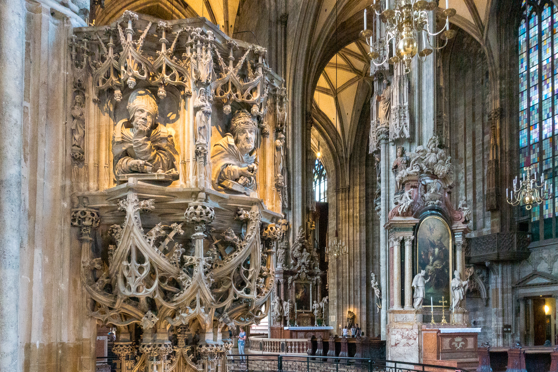 • The Pulpit: The Pilgram Pulpit, a late Gothic marvel, is a highlight of the interior. Its intricate carvings, including a self-portrait of the sculptor Anton Pilgram, are a testament to medieval craftsmanship.