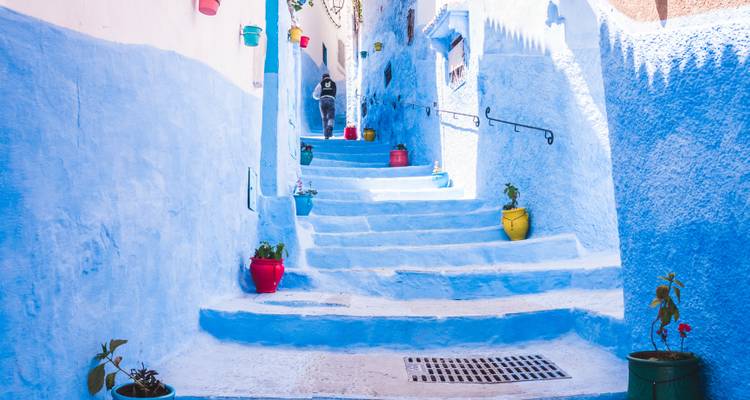 After breakfast in the hotel you will have a guided tour of Fes, visiting the Royal Palace Gate, the Jewish Quarter and the old medina. In the afternoon we travel to Chefchaouen, stopping en route for lunch. One of the prettiest towns in Morocco, Chefchaouen is known as ‘the blue city’ – an arty, blue-washed mountain village. The old medina is a delightful mix of Moroccan and Andalusian influences with red-tiled roofs, bright-blue buildings and narrow lanes. Overnight stay at your hotel in Chefchaouen. Breakfast included.