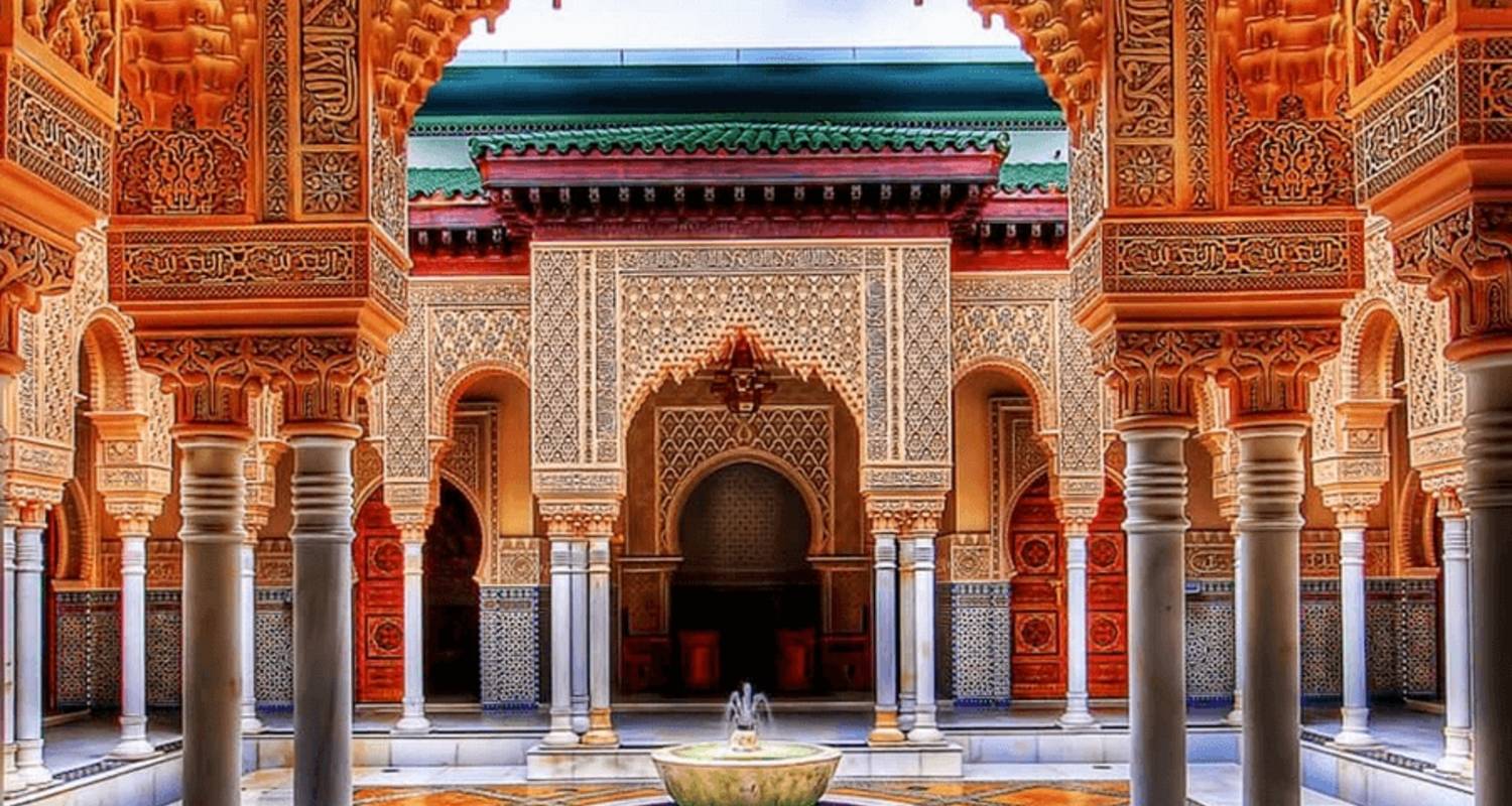 We awake early to watch the wonderful sunrise and have breakfast and shower at the camp before we ride camels back to the hotel in Merzouga where you meet our driver to travel to Fes through the Middle Atlas region, a journey that takes us through many beautiful landscapes. We make a brief stop in the region of Er Rachidia to take in the incredible views of the lush palmeraie of the Ziz Valley, followed by lunch in Midelt. Later we make a short stop in Ifrane, known for its alpine-style architecture, where you may catch a glimpse of the curious monkeys who live within the beautiful cedar forests. We arrive in Fes at around 6 p.m. Overnight stay at your hotel in Fes. Breakfast included.