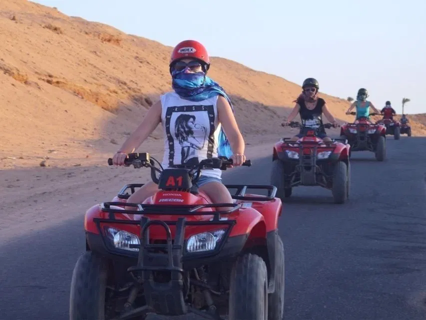 Thrilling Quad Bike Experience: Feel the rush of adrenaline as you navigate your own quad bike across the vast and challenging terrain of the Sinai Desert. Explore the dramatic landscape of sandy dunes and rocky mountains.