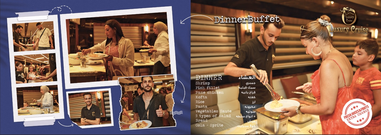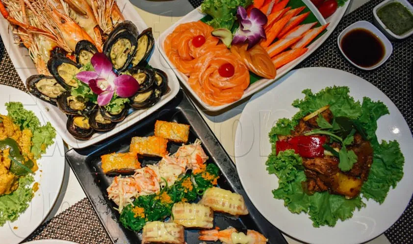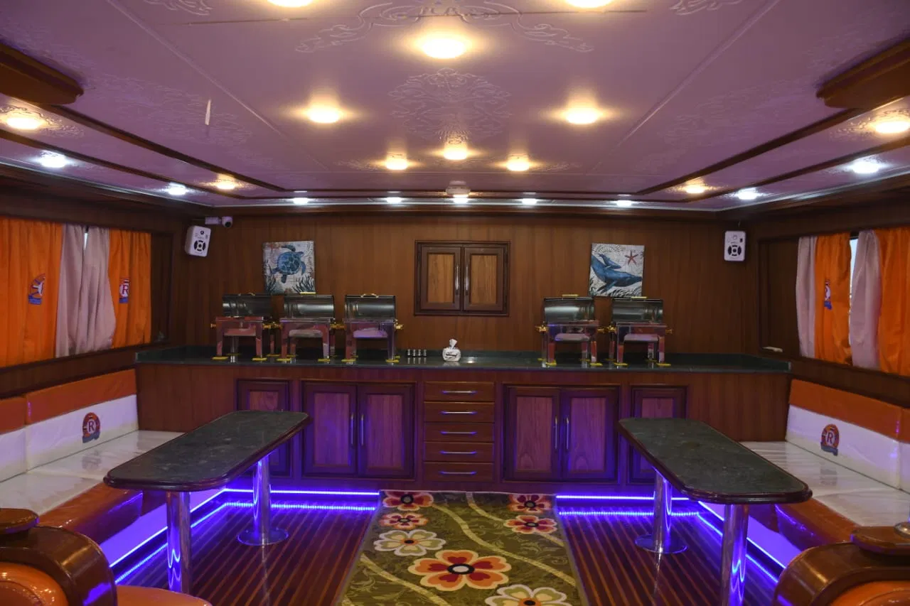 Lavish Buffet Dinner: Indulge in a delicious, lavish buffet dinner featuring a wide selection of both international and local cuisine. Enjoy your meal against the backdrop of the shimmering sea.