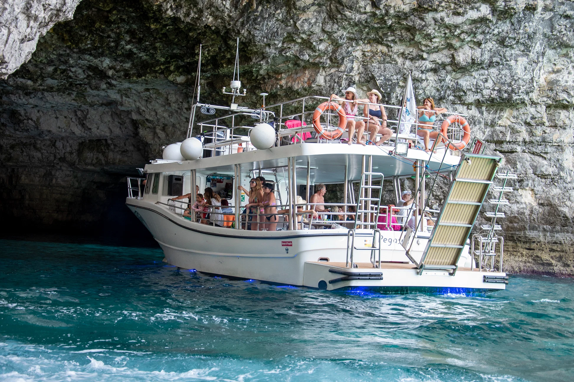 Our first destination is the legendary Blue Lagoon on Comino, where we’ll anchor for approximately 1½ to 2 hours. Famed for its crystal-clear cyan waters and white sandy seabed, this lagoon is a bucket-list destination. Spend your time swimming, snorkeling, exploring Comino’s countryside trails, or simply sunbathing on the deck.