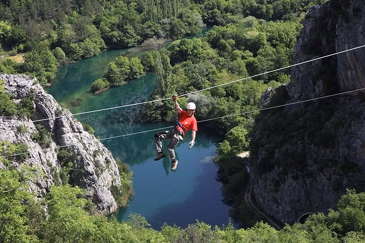 First, paddle and float your way down the roaring river on an exhilarating rafting journey. Then, jump, climb, and swim through the canyon’s unique rock formations during the canyoning segment, exploring hidden gems. Afterward, you’ll enjoy a delicious lunch by the river, refueling amidst stunning natural beauty. The excitement continues as you zipline over the canyon, taking in breathtaking panoramic views of the surrounding nature from above.