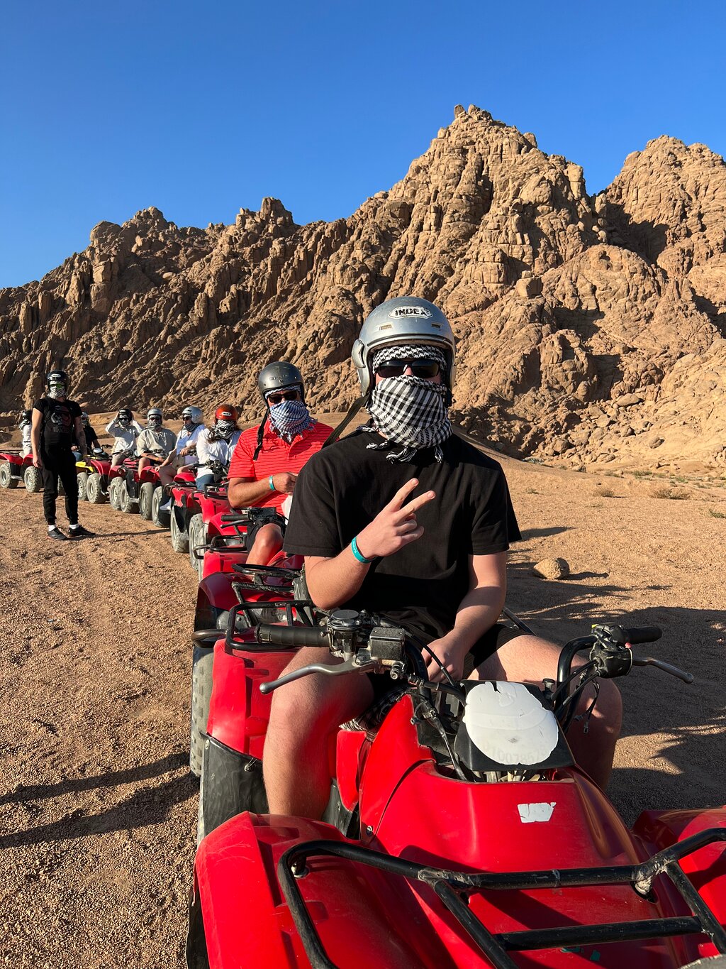 Imagine the thrill of conquering the Sinai Desert on a powerful quad bike, followed by an enchanting evening under the stars. Our tour offers the perfect blend of excitement and relaxation, taking you on a journey through stunning desert landscapes and immersing you in authentic Bedouin traditions.
