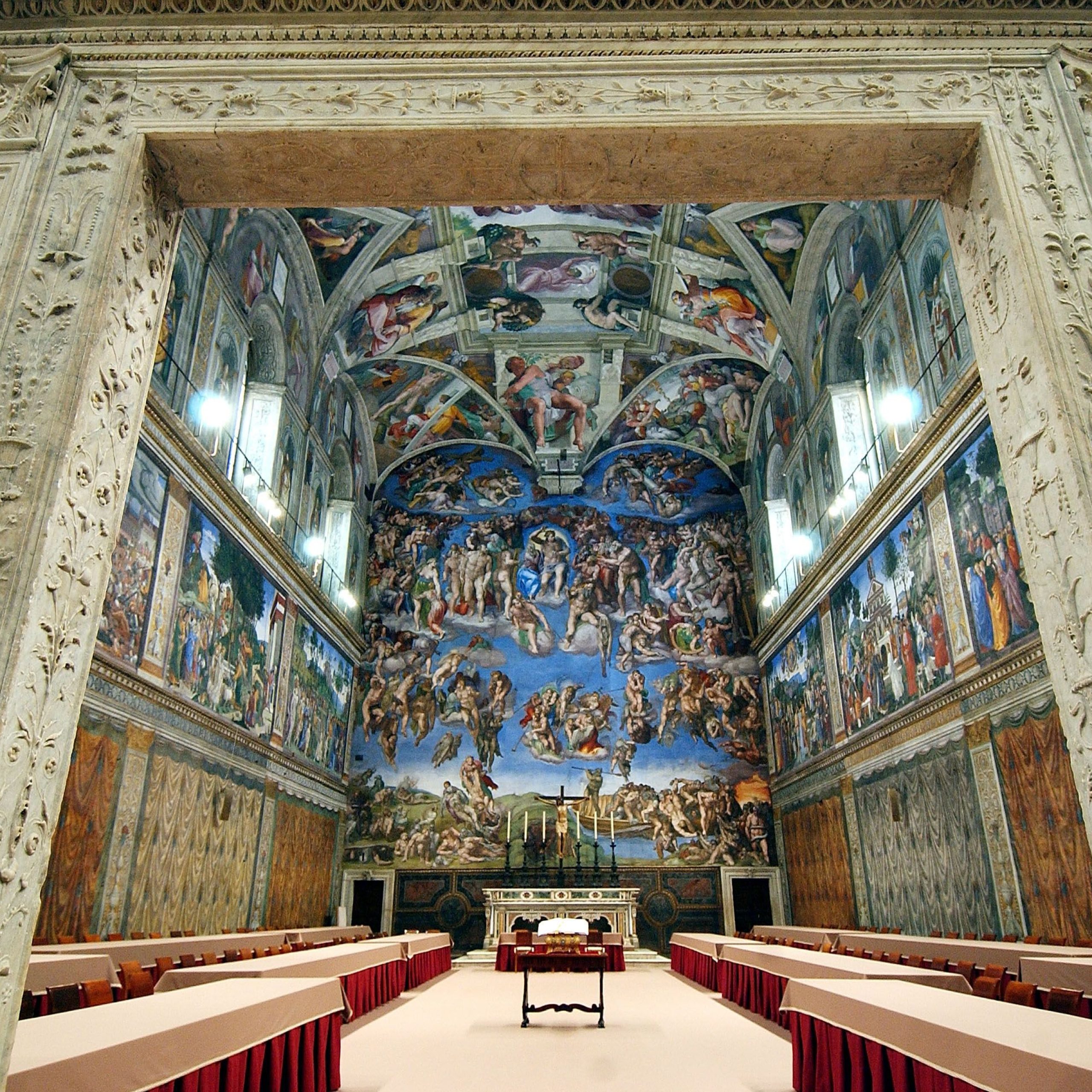 Michelangelo created more than 300 figures on over 500 square meters of ceiling space in his stunning fresco. Twenty-two years later, he returned to create the Last Judgement on the entire wall above the altar.