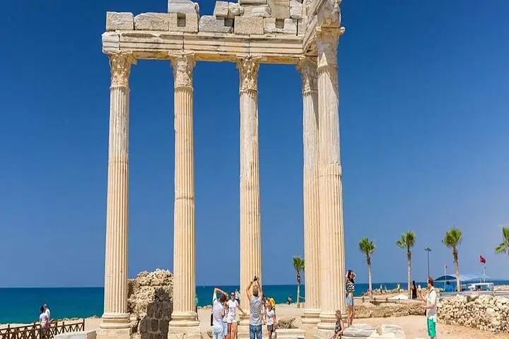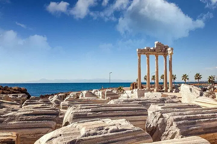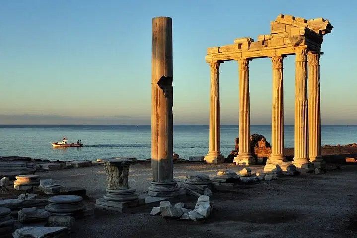 At 02:00 PM, explore the ancient city of Side, beautifully situated by the sea. Admire its magnificent marble columns, another impressive ancient theatre, and the iconic Temple of Apollo, all set against breathtaking views of the Mediterranean Sea.
