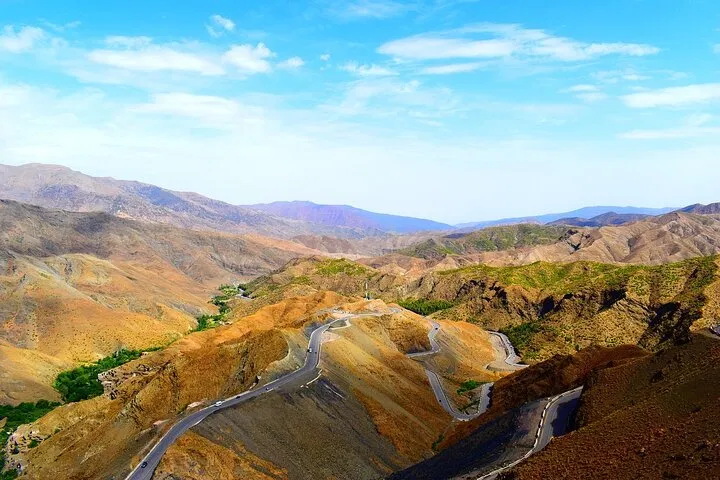 • Scenic Mountain Drive: Enjoy stunning views of the High Atlas Mountains and traverse the highest road pass in Morocco, the Tizi n’Tichka Pass, at 2,260 meters.
