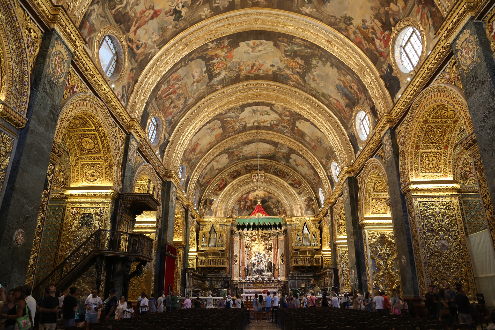 While the exterior of the cathedral is relatively austere, the interior underwent a dramatic transformation in the 17th century under the direction of Italian artist and knight, Mattia Preti. Preti adorned the cathedral with intricate Baroque decorations, including gilded sculptures, frescoes, and marble inlays, turning it into one of the most lavishly decorated churches in Europe.