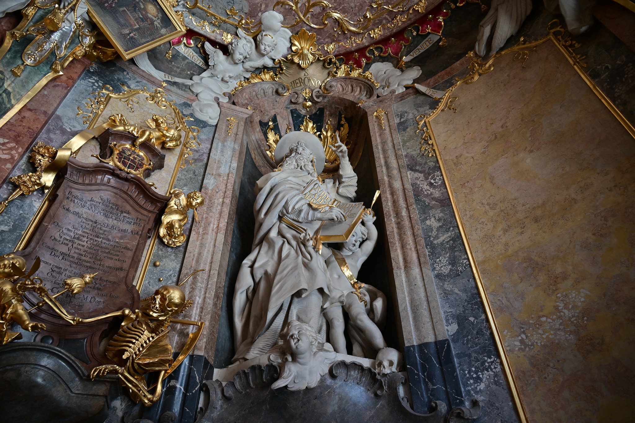 • Ceiling Fresco – A masterpiece by Cosmas Damian Asam, depicting St. John Nepomuk ascending to heaven, bringing an ethereal feeling to the church.