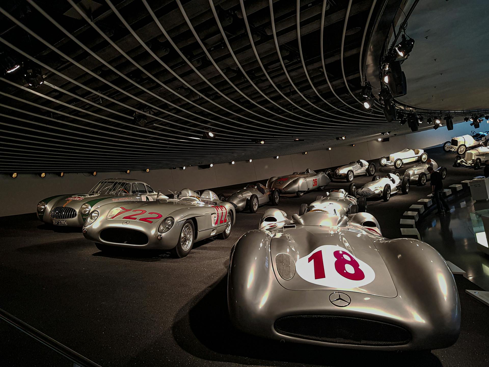 Mercedes-Benz has a rich history in Formula 1, endurance racing, and DTM. The museum showcases legendary Silver Arrow race cars, championship-winning Formula 1 vehicles, and stories of racing legends like Juan Manuel Fangio, Michael Schumacher, and Lewis Hamilton.