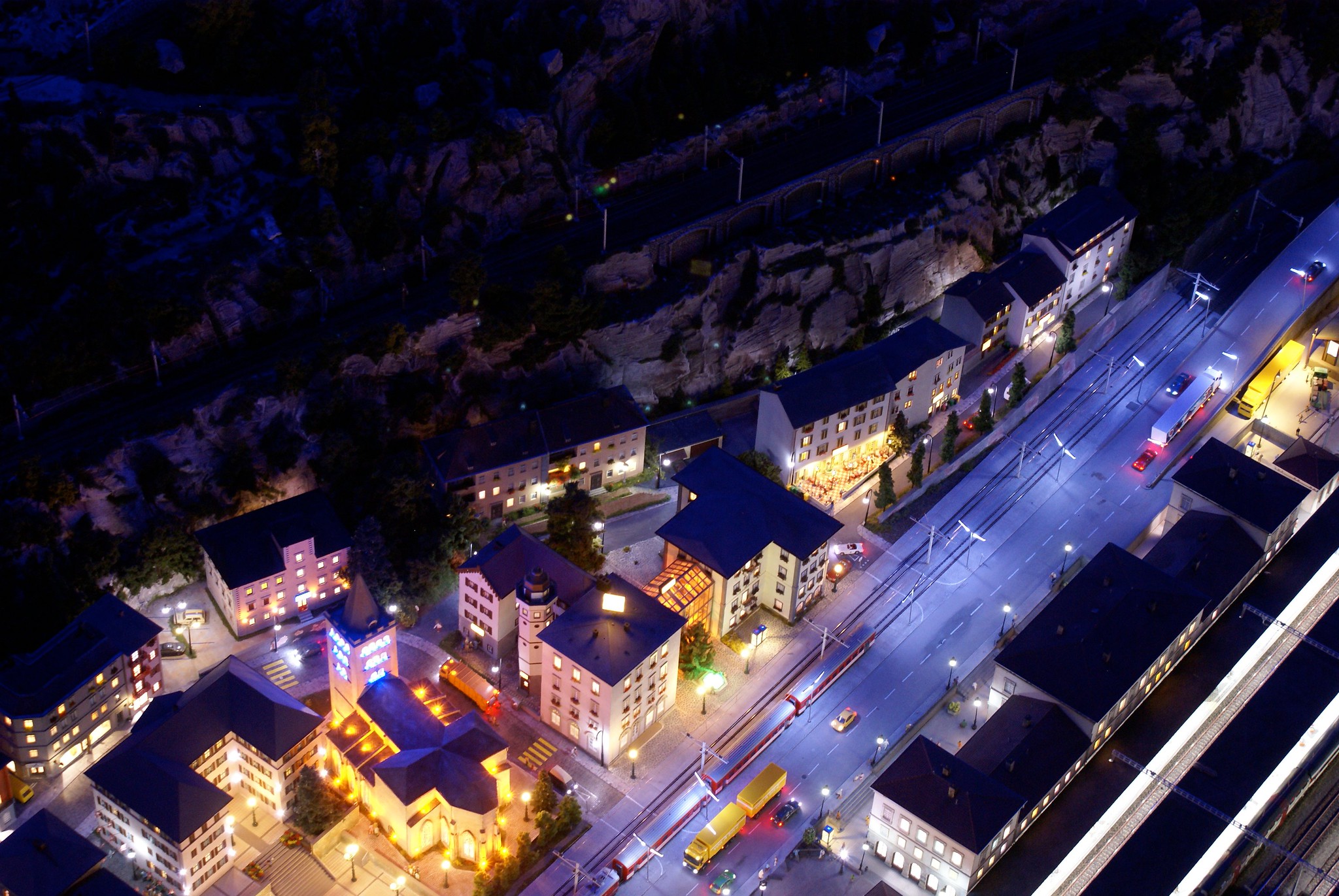Every 15 minutes, the lights dim, and the miniature world transforms into a magical nighttime scene, complete with twinkling lights, illuminated buildings, and moving vehicles. - Interactive Elements