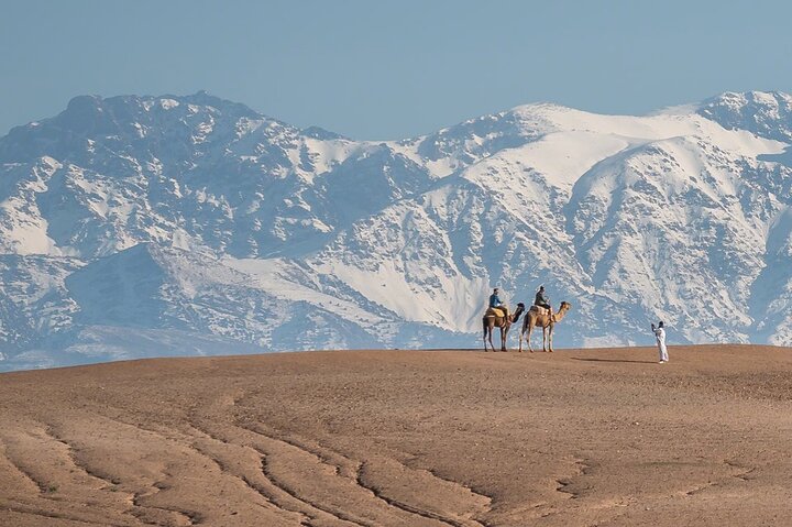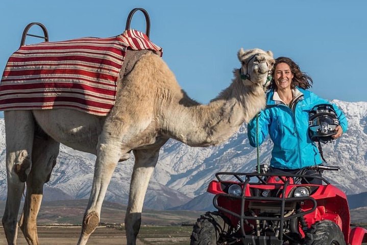 Located just outside of Marrakech, the Agafay Desert is a peaceful escape from the hustle and bustle of Marrakech city, offering breathtaking views of Atlas Mountains and a chance to fully relax and unwind in Agafay nature. The quad biking and camel riding allow you to fully immerse yourself in the beauty of the desert, while the dinner show featuring traditional Moroccan music and dance allows you to experience the culture and traditions of Morocco in a unique and authentic way.