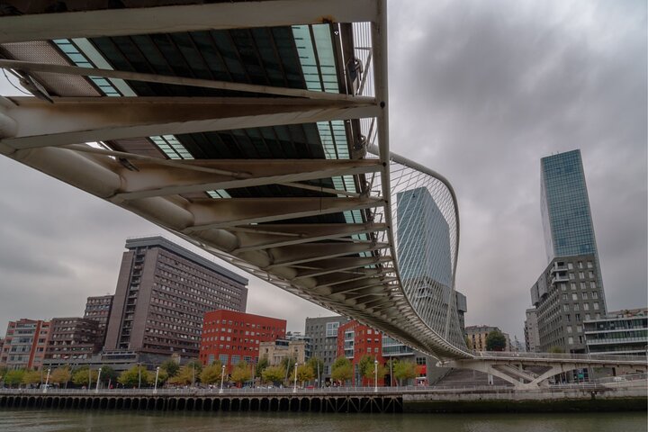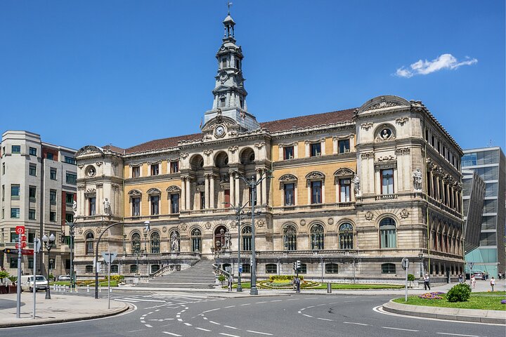 What you will visit: Doña Casilda Iturrizar Park, Guggenheim Museum Bilbao, Zubizuri, Bilbao City Hall, Teatro Arriaga, Plaza Nueva, Unamuno Miguel Plaza, Santiago Cathedral, Erriberako Merkatua (Ribera Market), and San Anton Eliza.