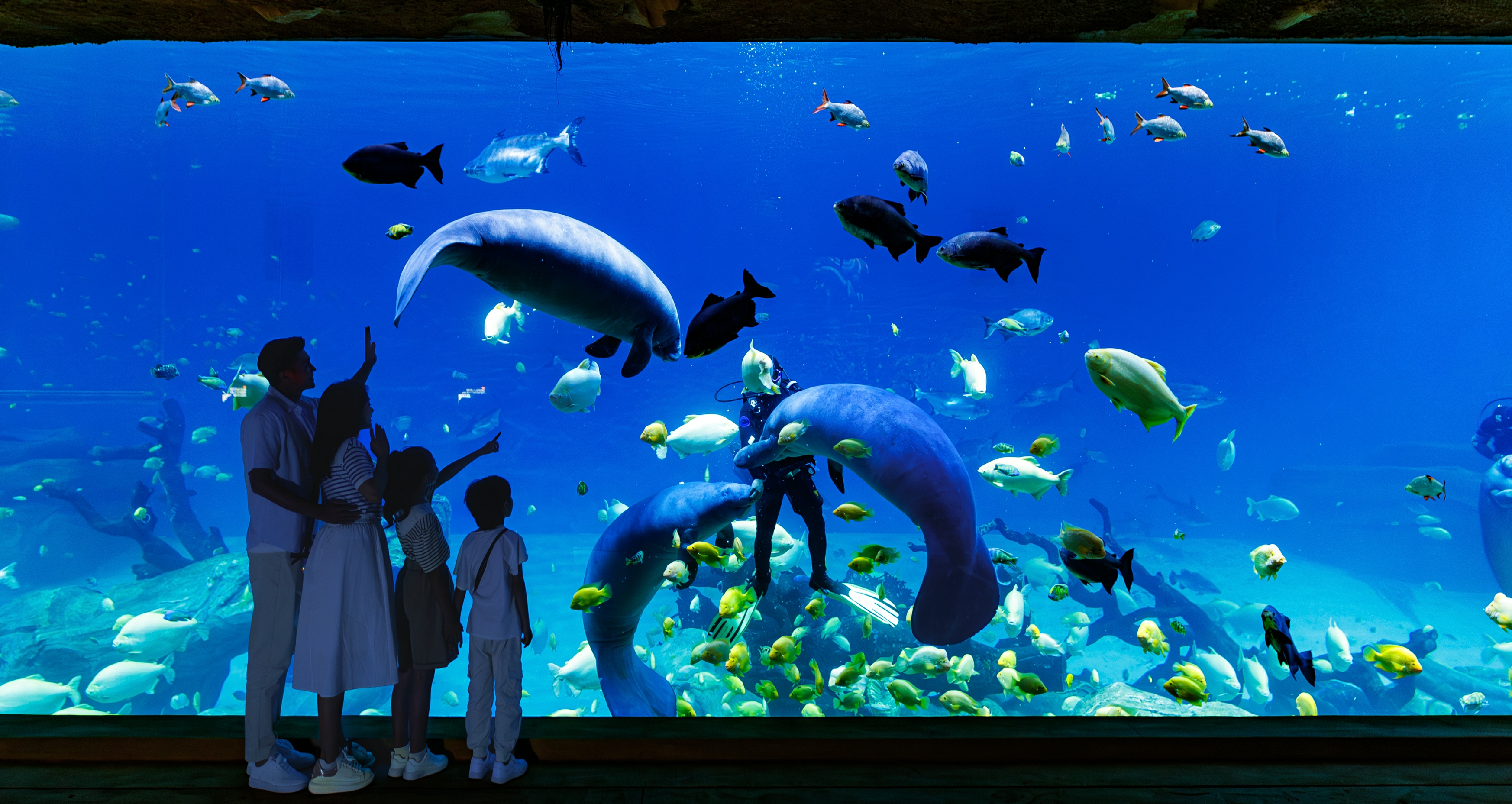 Enjoy immersive environments with whales, dolphins, and ocean wonders
