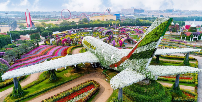 Dubai Miracle Garden is a world-renowned floral destination and a true oasis in the heart of the desert. Located in the Dubailand district, it holds the title of the world’s largest natural flower garden, featuring over 50 million blooming flowers and 250 million plants across a stunning 72,000 square meters. Opened on Valentine’s Day in 2013, the garden transforms seasonally with vibrant floral sculptures, immersive pathways, and creative installations that attract millions of visitors each year. From a life-sized Emirates A380 floral structure to whimsical heart tunnels and character-themed displays, Dubai Miracle Garden is a celebration of color, design, and natural beauty — offering a magical experience for families, couples, and nature lovers alike.