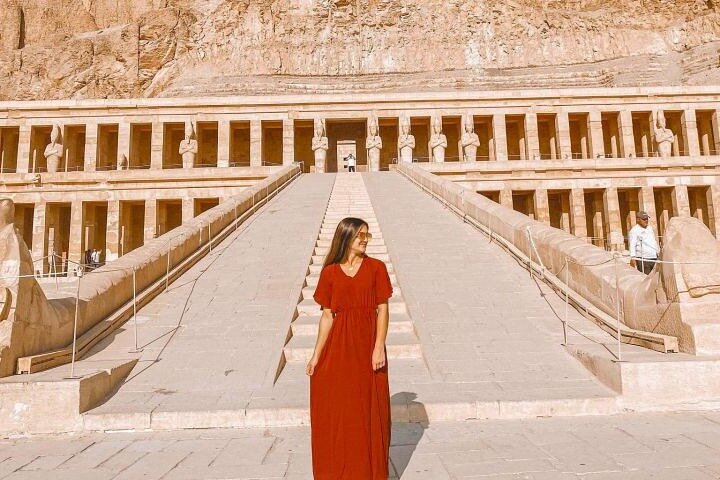 Go to the Temple of Hatshepsut, dedicated to the only woman Pharaoh in ancient Egypt, rich with artwork, some of which still contain vibrant colors.