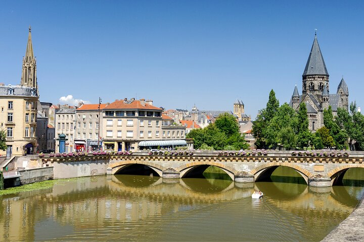 What you will visit: Gare de Metz, Serpentine Gate, Place de la République de Metz, Fontaines de l’Esplanade, New Temple, Metz Cathedral, Place d’Armes, Église Notre-Dame, Place St Louis, and German Gate.