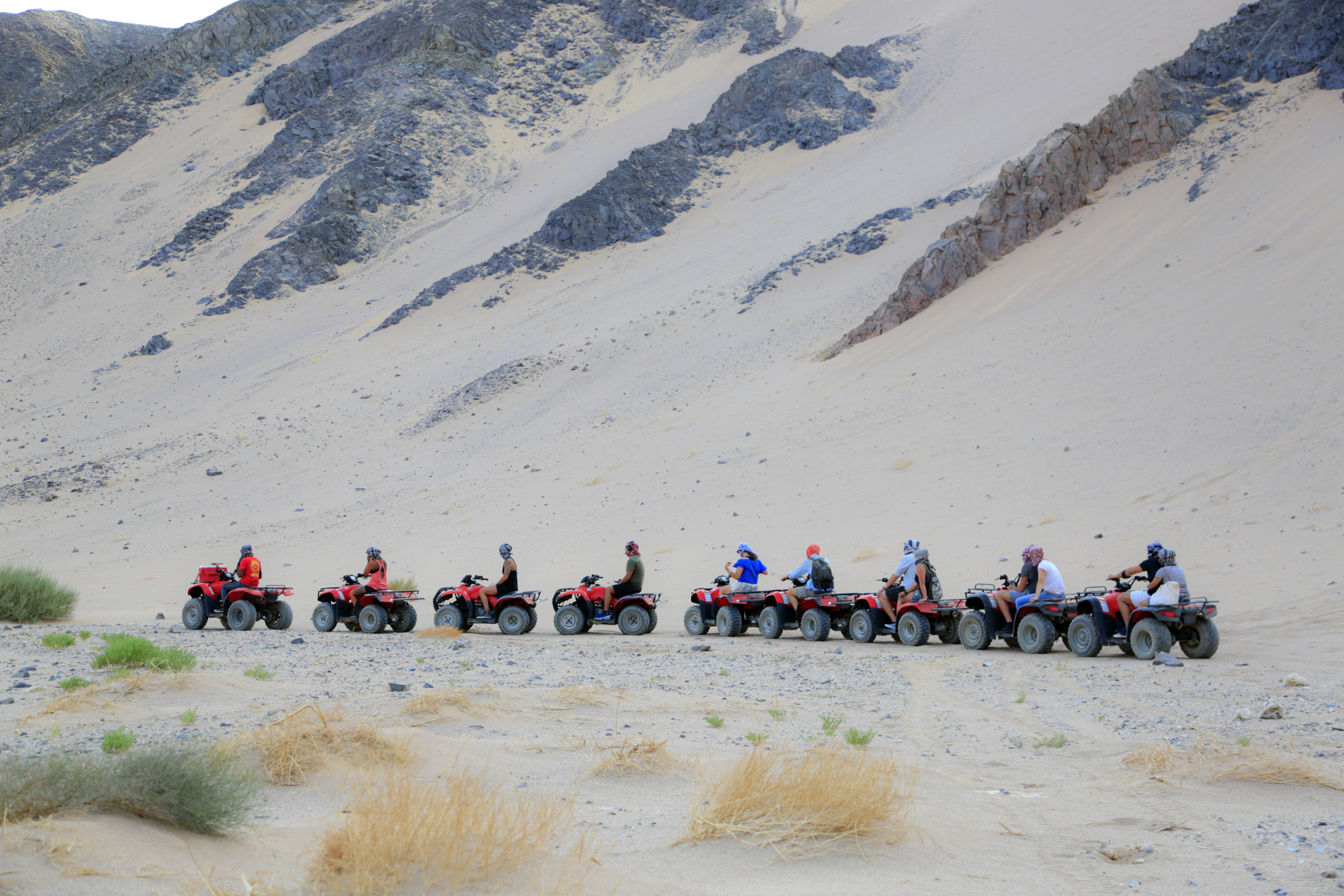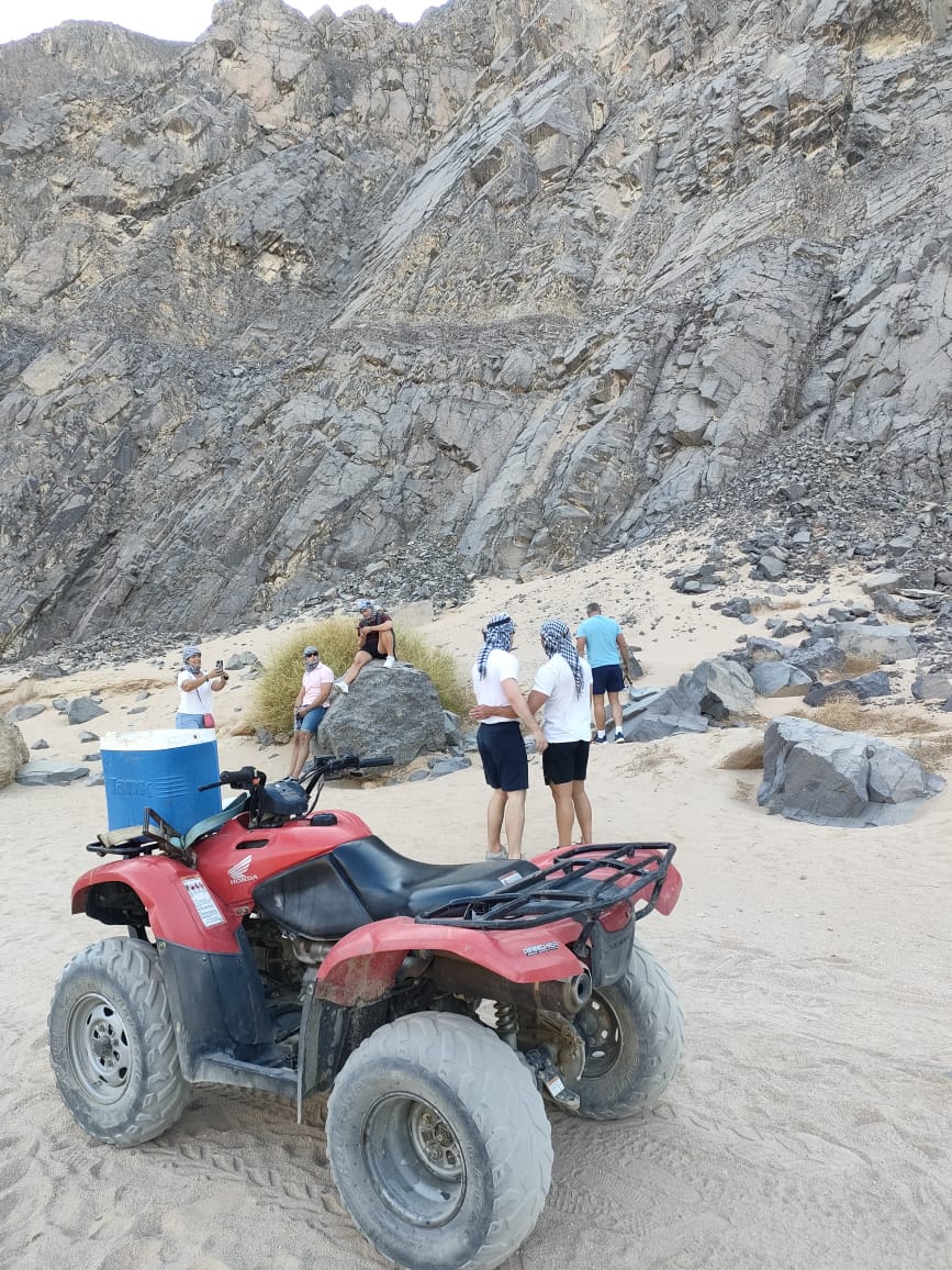 Tour starts by pick up from your hotel & a transfer to the Safari station. A quick introduction before you hop on your quad bike and cut through the timeless golden sands to the Bedouin camp. Take a breather with the traditional tea as you walk around learning about the unique Bedouin lifestyle. After the modern quad bike ride, it’s time for you to try a more traditional method of transportation; the camel. Your guide will tell you about the native scorpion and snake species as you enjoy a comfortable camel ride through the desert.Â