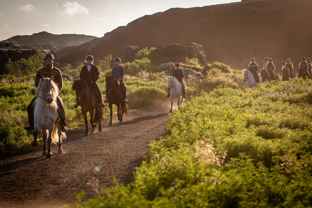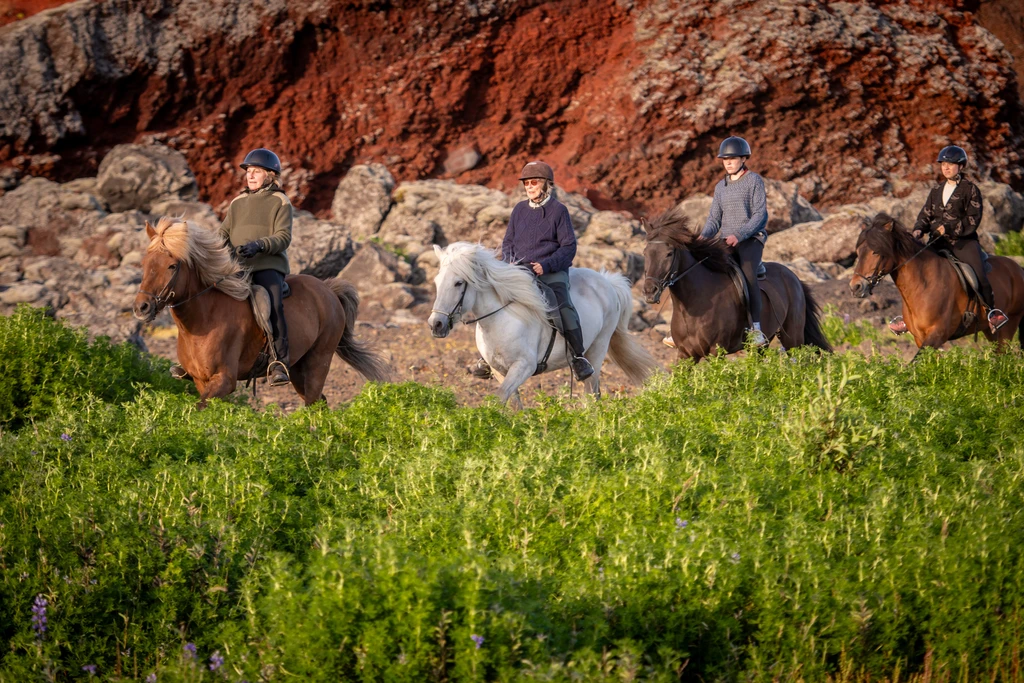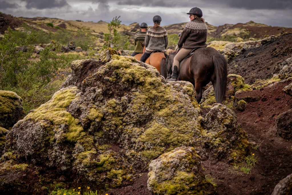 The Journey: As we leave the stables, the landscape quickly transforms. You’ll wind through the peaceful Hólmsheiði forest, a rare treat in Iceland, before the horizon opens up to reveal the spectacular Rauðhólar. These crimson-colored craters provide a stark, beautiful contrast to the green hills. Throughout the 1.5-hour ride, your guide will share local lore and geological facts about the volcanic forces that shaped this area.