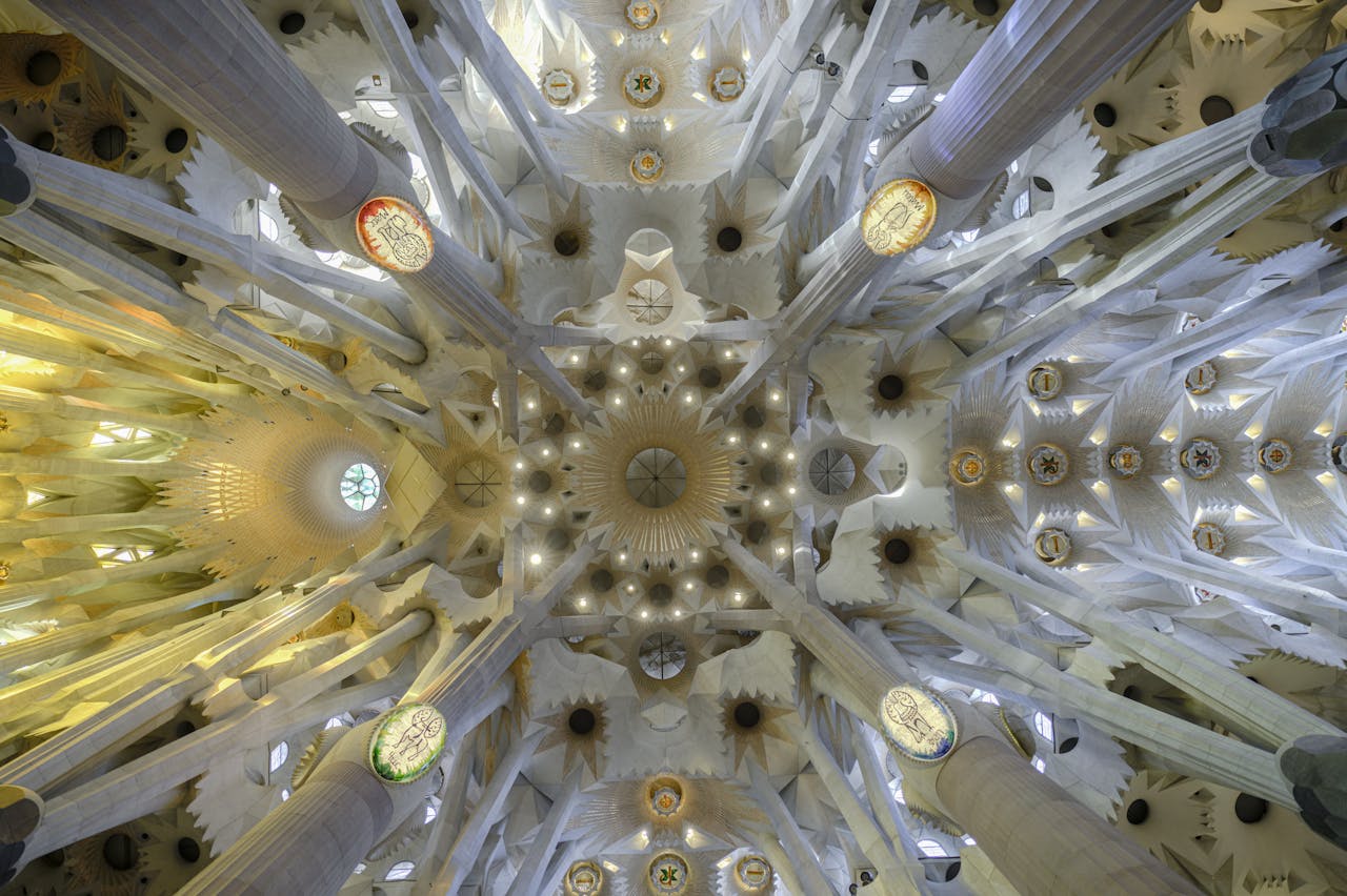 Prepare to be mesmerized as you step inside this modernist basilica, where every detail tells a story of nature, faith, and innovation. From the towering spires that dominate the city skyline to the kaleidoscope of colors streaming through the stained-glass windows, the Sagrada Familia is a feast for the eyes and soul.