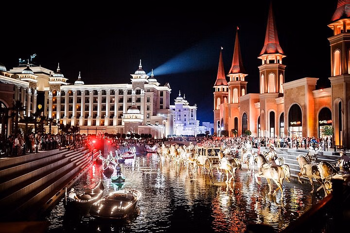 Your evening begins with a comfortable hotel pickup in Side around 8:00 PM. Sit back as you’re transported to the magical world of the Land of Legends, located just a short drive away.