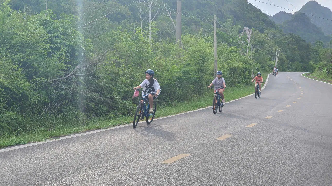 Your journey begins with a refreshing ride on an eco-friendly electric cart through Cat Ba’s scenic coastline to Khoan Sau Ranger Station. Here, hop on a comfortable bicycle and start pedaling along the peaceful road that hugs the edge of Cat Ba National Park.