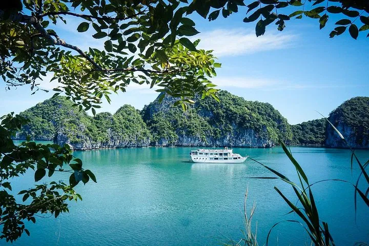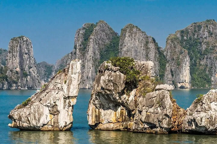 13:15: Feast on a seafood lunch as the ship sails past iconic karst formations into the heart of the bay.