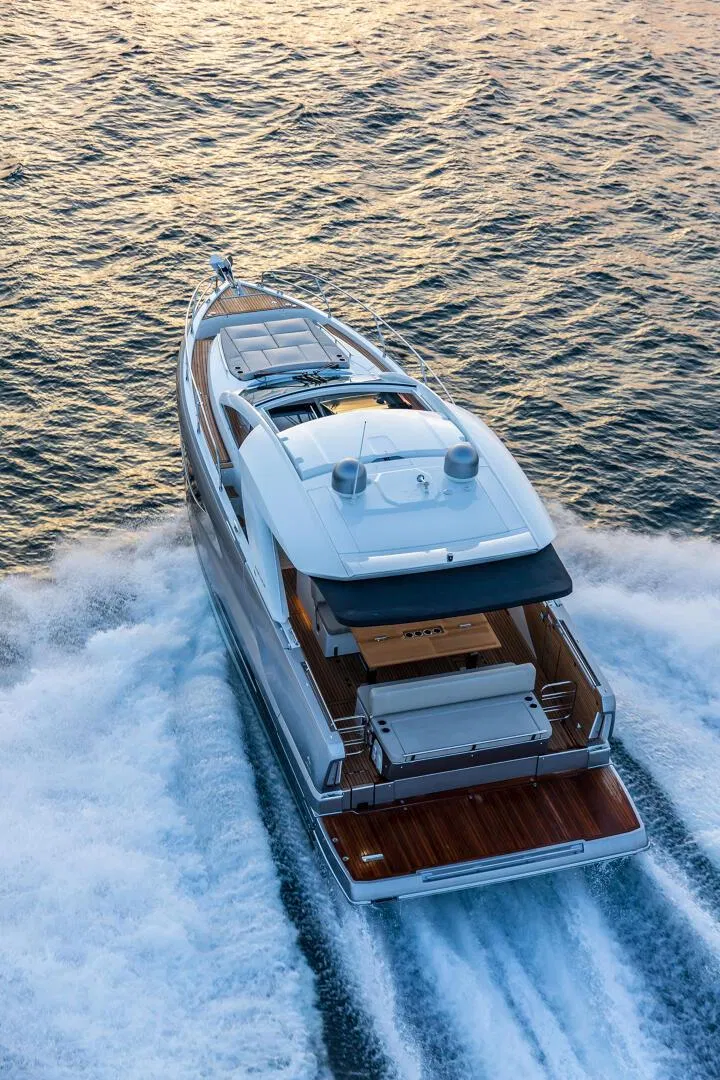 • Premium On-Board Amenities: Enjoy a sophisticated sound system, a shaded cockpit lounge, and lateral opening terraces that maximize your space at sea.