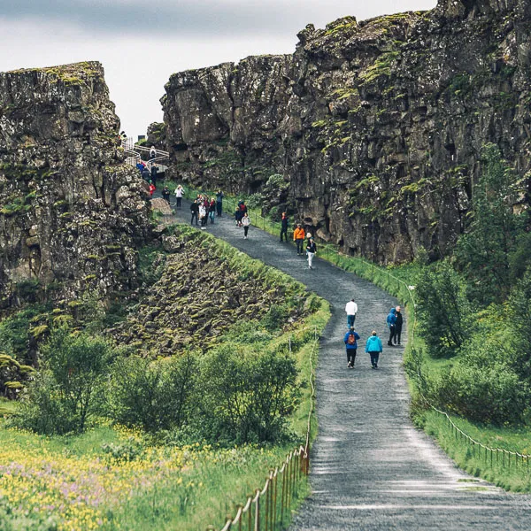 Walk between the North American and Eurasian tectonic plates while exploring Iceland’s historic parliament site. Stroll along dramatic rift valleys and lava fields, enjoying the natural beauty of this UNESCO World Heritage site. Capture stunning photos of the unique landscapes and take short optional hikes to enhance the experience. This stop combines history, geology, and breathtaking scenery all in one.