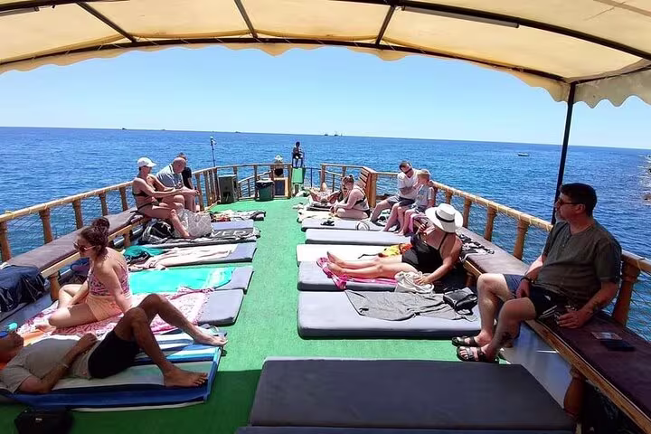 • A Sanctuary of Relaxation: Unlike high-energy party cruises, our boat is dedicated to peace and comfort. Enjoy plenty of space to lounge, read, or simply soak in the Mediterranean sun without the loud music or foam machines.