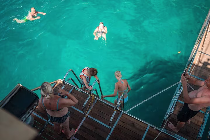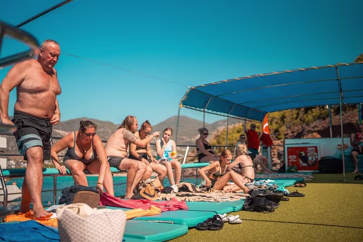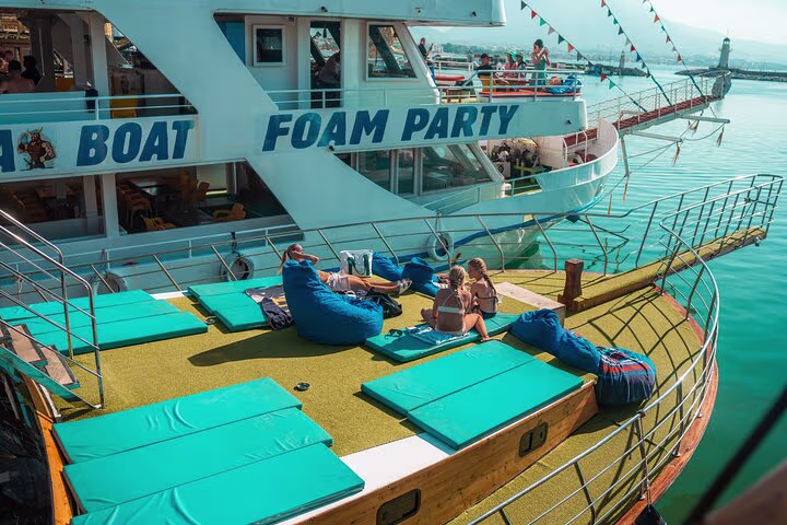 A Sanctuary of Relaxation: Unlike high-energy party cruises, our boat is dedicated to peace and comfort. Enjoy plenty of space to lounge, read, or simply soak in the Mediterranean sun without the loud music or foam machines.
