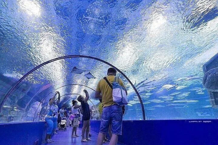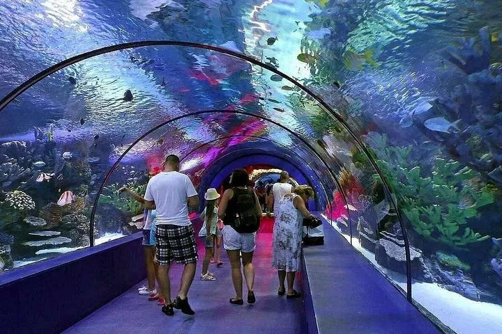 • World-Class Tunnel Aquarium: Walk through a stunning 131-meter-long underwater tunnel. See sharks, rays, and thousands of exotic fish swimming just inches away from you.
