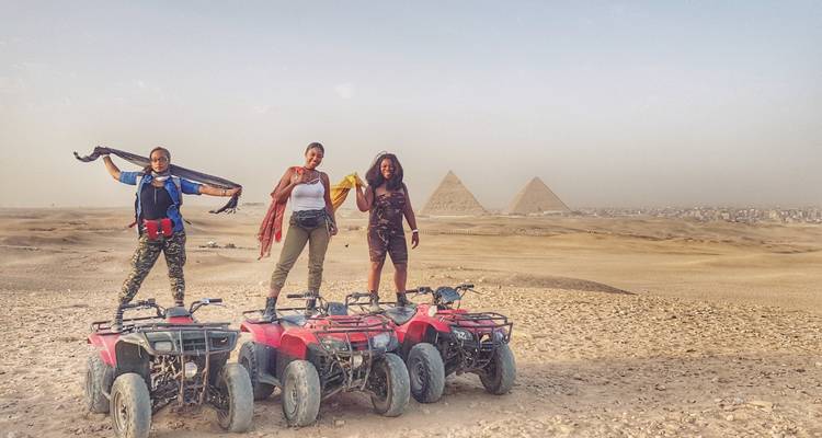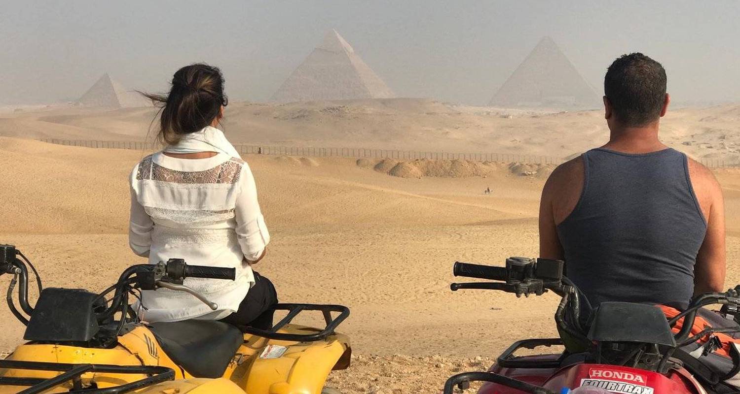 Embark on a One-Hour quad bike ride adventure through the breathtaking Pyramids Desert of Giza, where history meets adrenaline! Starting and ending in the vibrant city of Cairo, this unique tour offers a chance to witness the iconic Great Pyramids like never before—amidst golden sands and endless horizons. Starting time from 6 AM