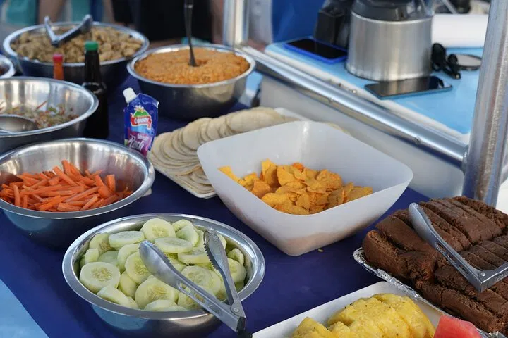 Open Bar & Refreshments: Sip on tropical cocktails, cold beer, or soft drinks as you lounge on the spacious catamaran decks.