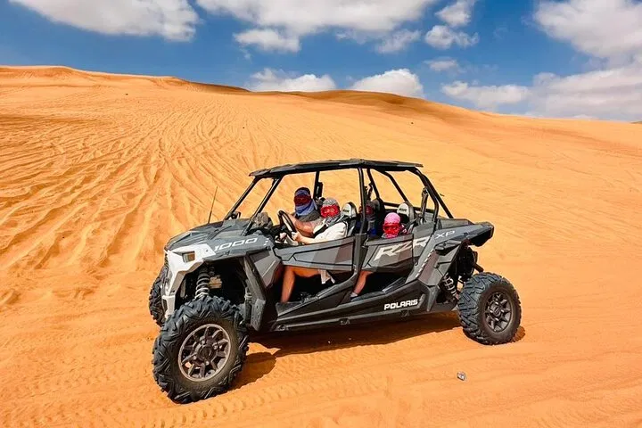 2. Adventure Time: Arrive at the desert and meet your guide for a safety briefing. Then, hop onto a 4×4 dune buggy for an hour of thrilling rides, dune bashing, and sandboarding.