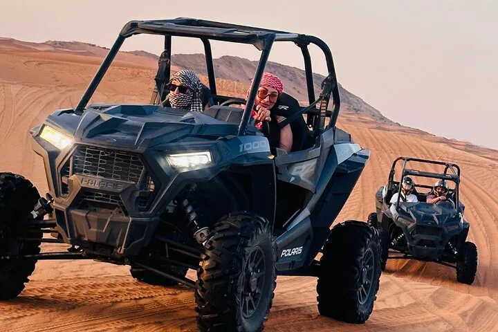 Adventure Time: Arrive at the desert and meet your guide for a safety briefing. Then, hop onto a 4×4 dune buggy for an hour of thrilling rides, dune bashing, and sandboarding.