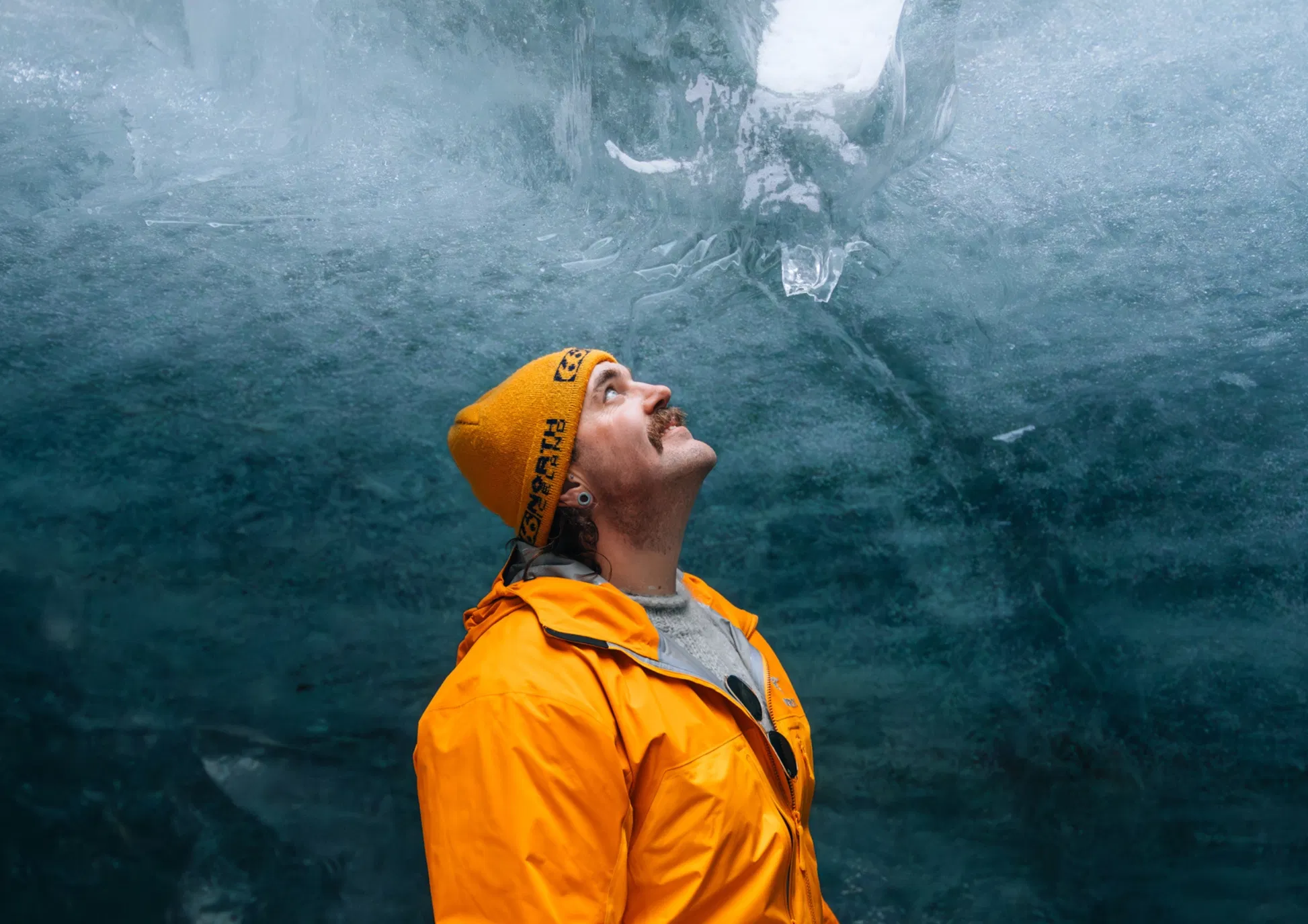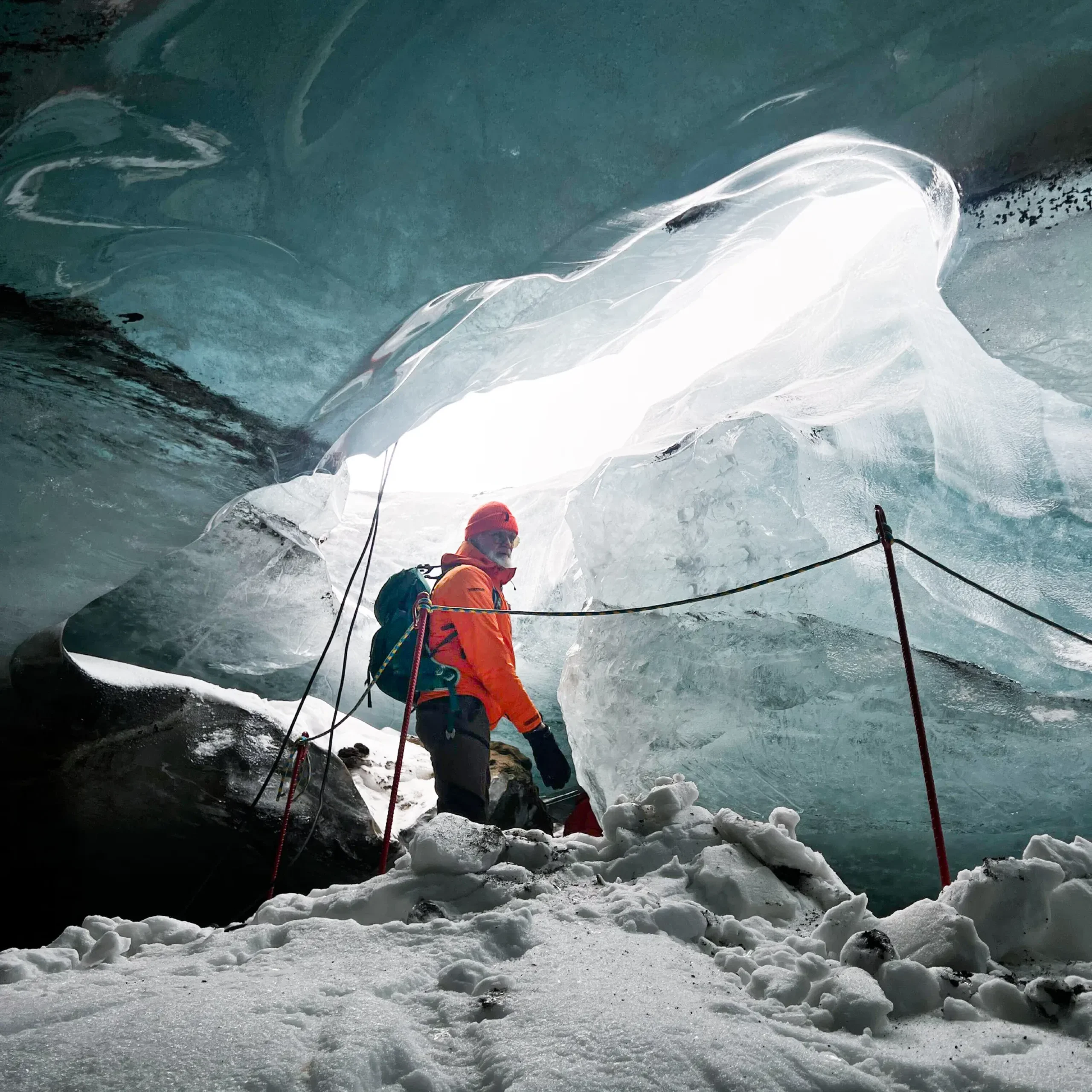 04. The Ice Cave Experience Step off the truck and into a crystal-clear ice cave. Explore the deep blue corridors of compressed ice, marveling at the veins of ancient volcanic ash embedded in the walls. It is a surreal, “frozen history” experience.