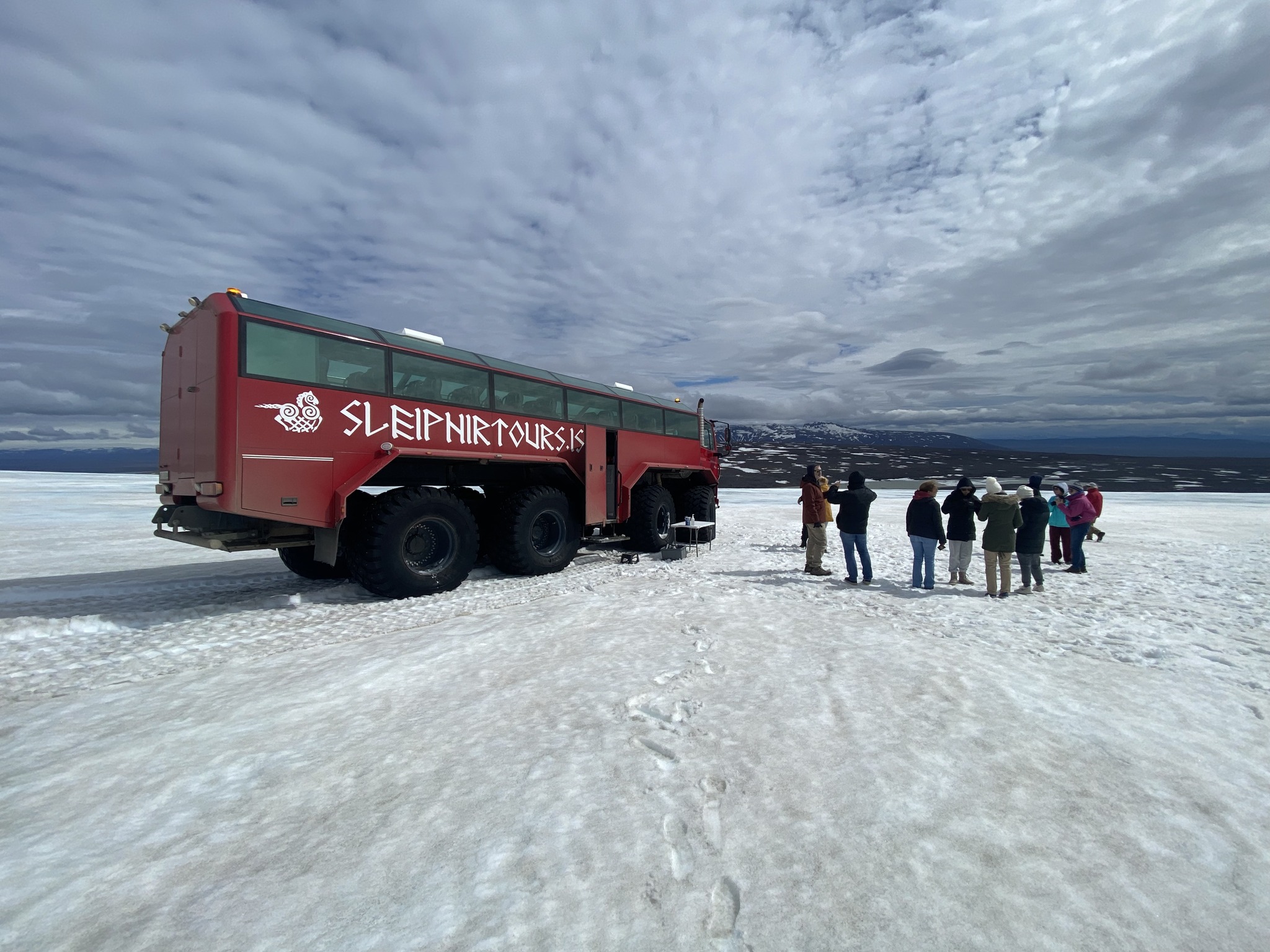 Langjökull Glacier Expedition: Traverse the massive “Long Glacier” aboard a massive 8-wheel Red Monster Truck, specifically designed to conquer the deepest snow.