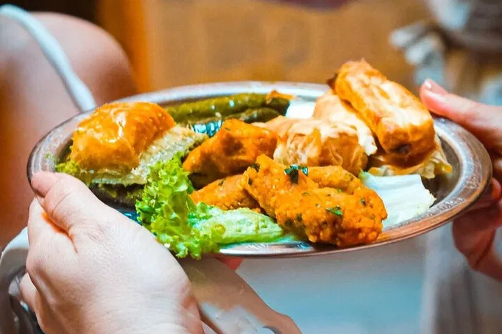 Ottoman Gastronomy: Savor a selection of Turkish delicacies including sigara böreği, sarma, mercimek köfte, and honey-sweet baklava.