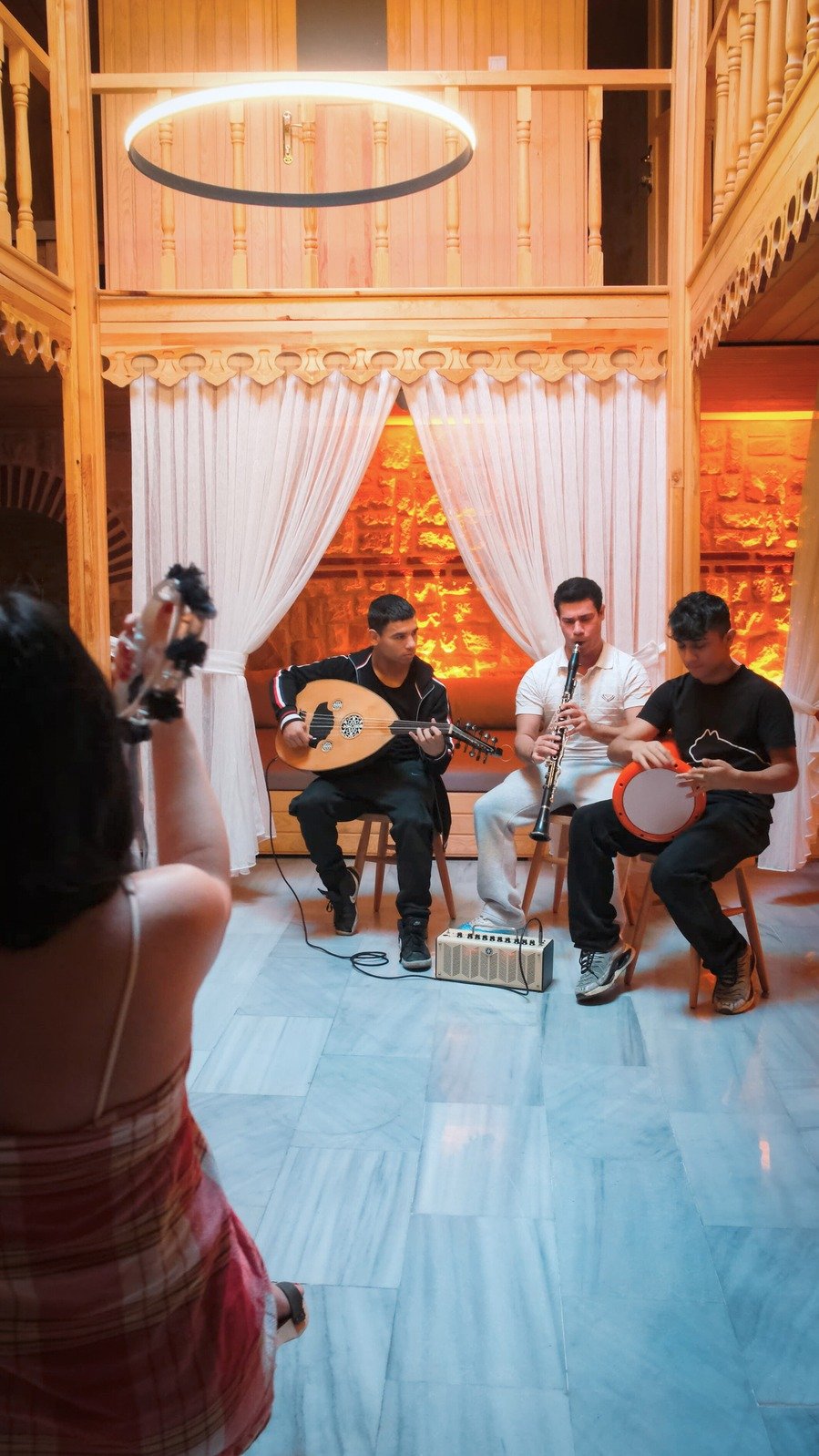 Live Turkish Trio: Relax to the hypnotic melodies of a live Darbuka, Clarinet, and Oud ensemble while you rest on the central stone.