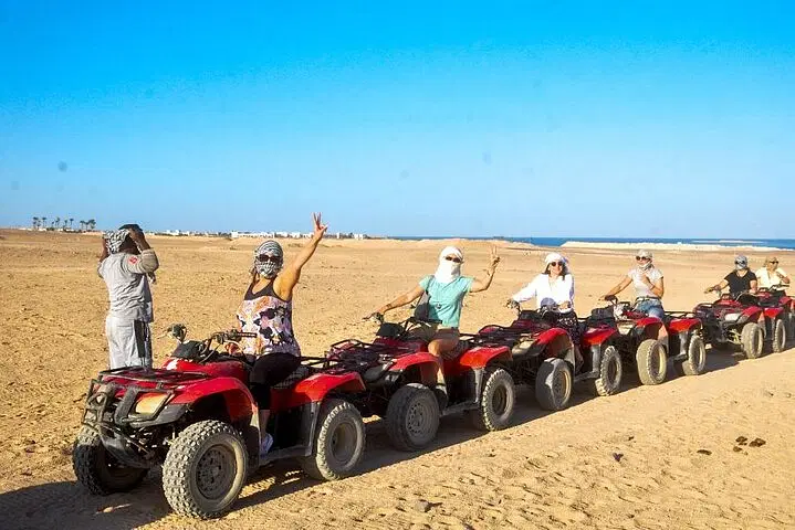 Embark on an exciting Hurghada desert adventure with an ATV quad bike safari, camel ride, and a visit to a traditional Bedouin village. Experience the thrill of the golden dunes, immerse yourself in Bedouin culture, and enjoy breathtaking desert views on this unforgettable adventure.