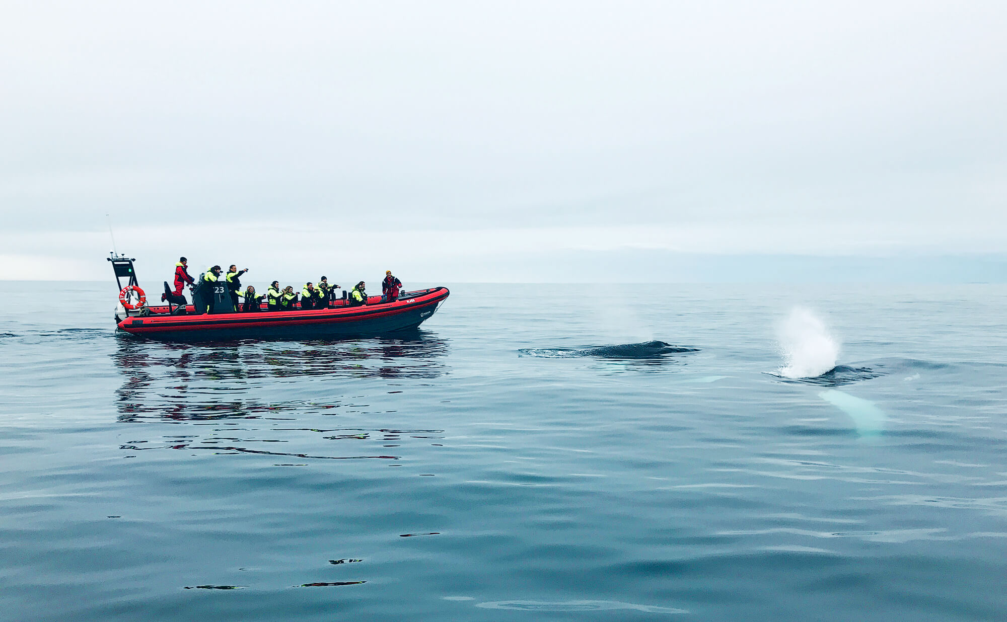 Unlike traditional oak boats, the RIB boat offers a “safari-style” experience. Its speed allows us to reach whales that are miles away in a fraction of the time, while its small size ensures a quiet, respectful, and incredibly personal encounter with Iceland’s marine giants. It is the best choice for photographers and adventure seekers wanting the most efficient wildlife tour in Húsavík.