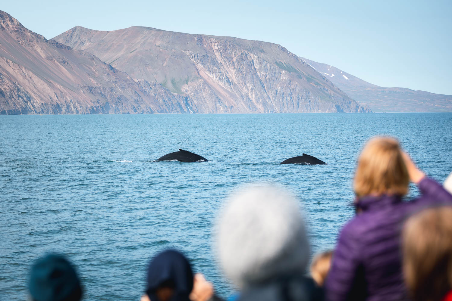 The Return: After the thrill of the sightings, we set course back to Húsavík. This is the time to relax on deck, enjoy your traditional refreshments, and share stories and photos with your fellow travelers as the majestic mountain scenery glides by.