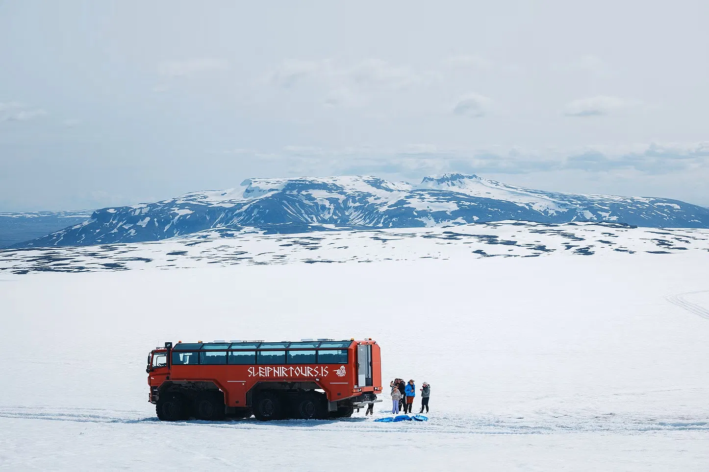 01. Meeting at Gullfoss Your journey begins at the Gullfoss upper parking lot. Ditch your rental car and board our Gigantic Red Monster Truck. Feel the power as the massive engine roars to life and we leave the paved roads behind.