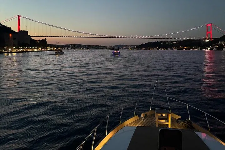 01. Embarkation on the Bosphorus Board your luxury yacht at a central pier. As we set sail, enjoy a refreshing drink and settle into the plush seating on the deck.