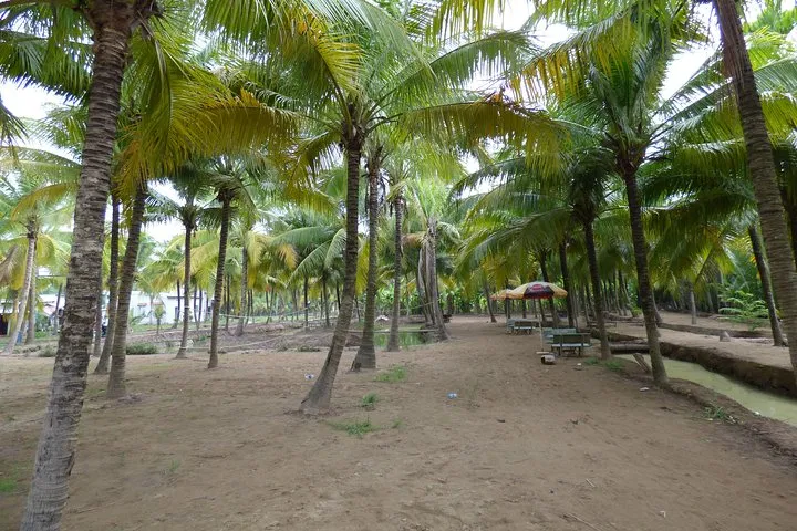• Rowing sampan boat ride through shaded palm waterways