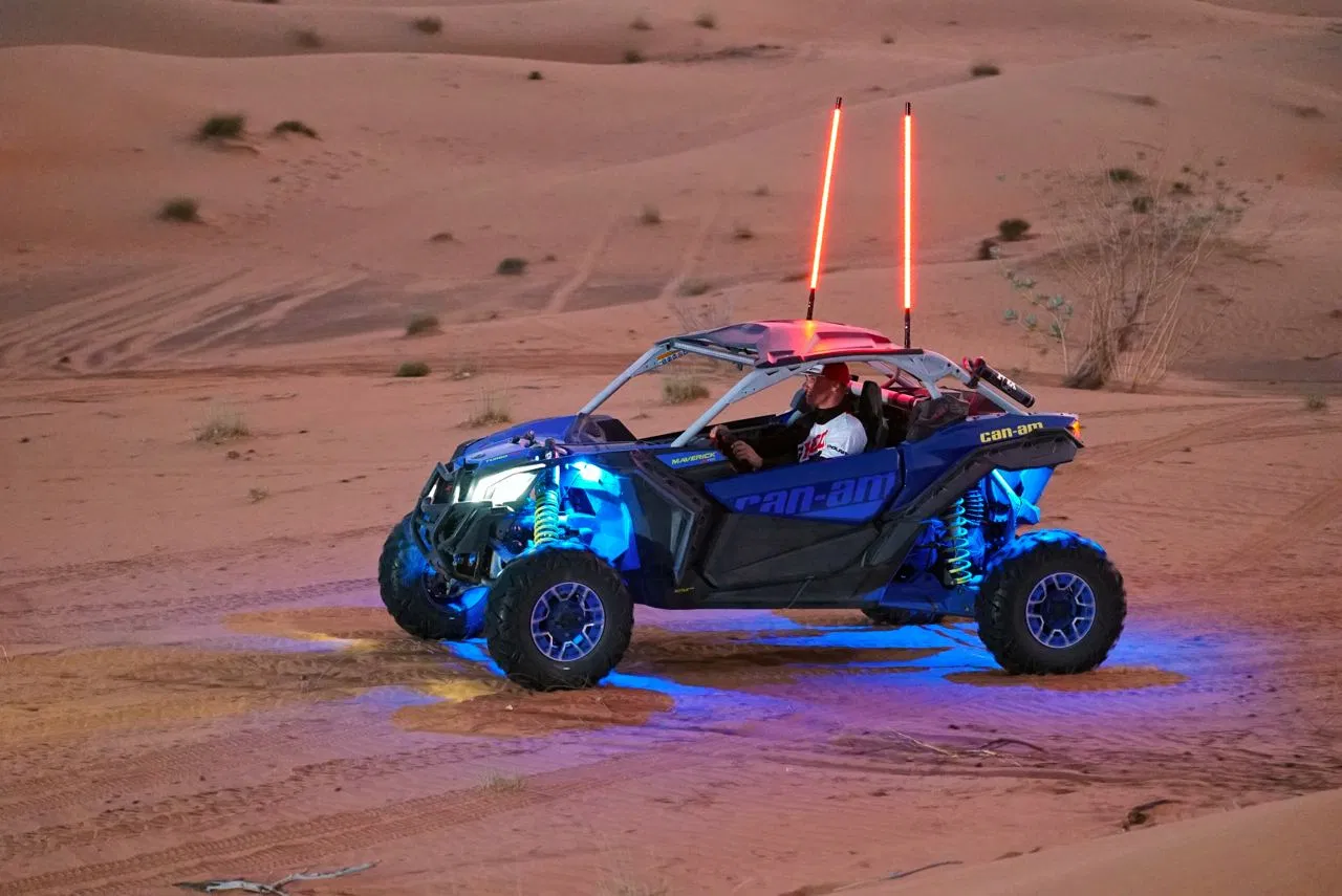 LED-Powered Adventure: Our buggies are outfitted with ultra-bright LED light bars, illuminating the dunes for maximum visibility and a futuristic “Tron-like” desert experience.