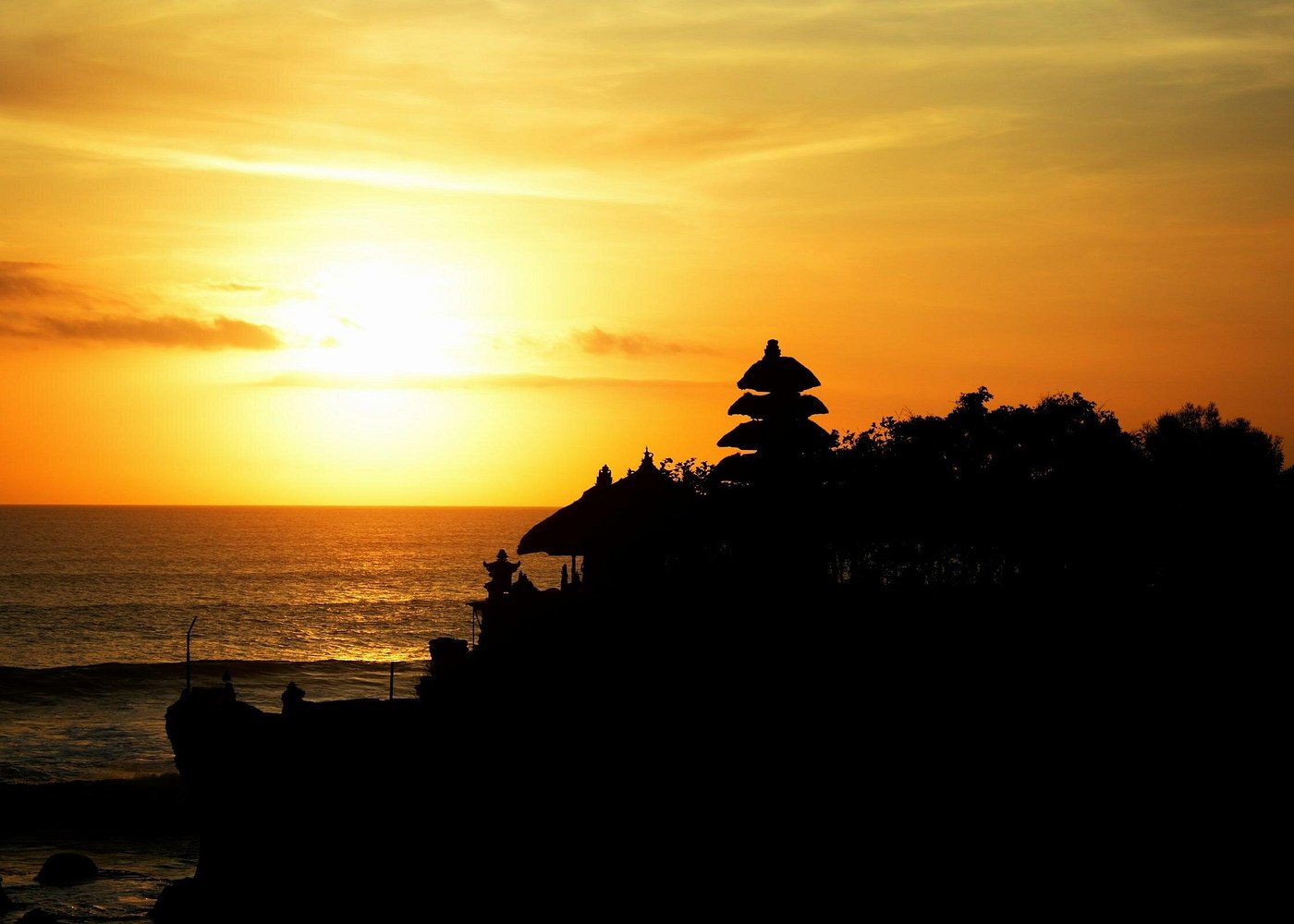 Tanah Lot Sunset: Witness the dramatic beauty of the offshore sea temple as the sun dips below the horizon, painting the sky in vibrant shades of gold and crimson.