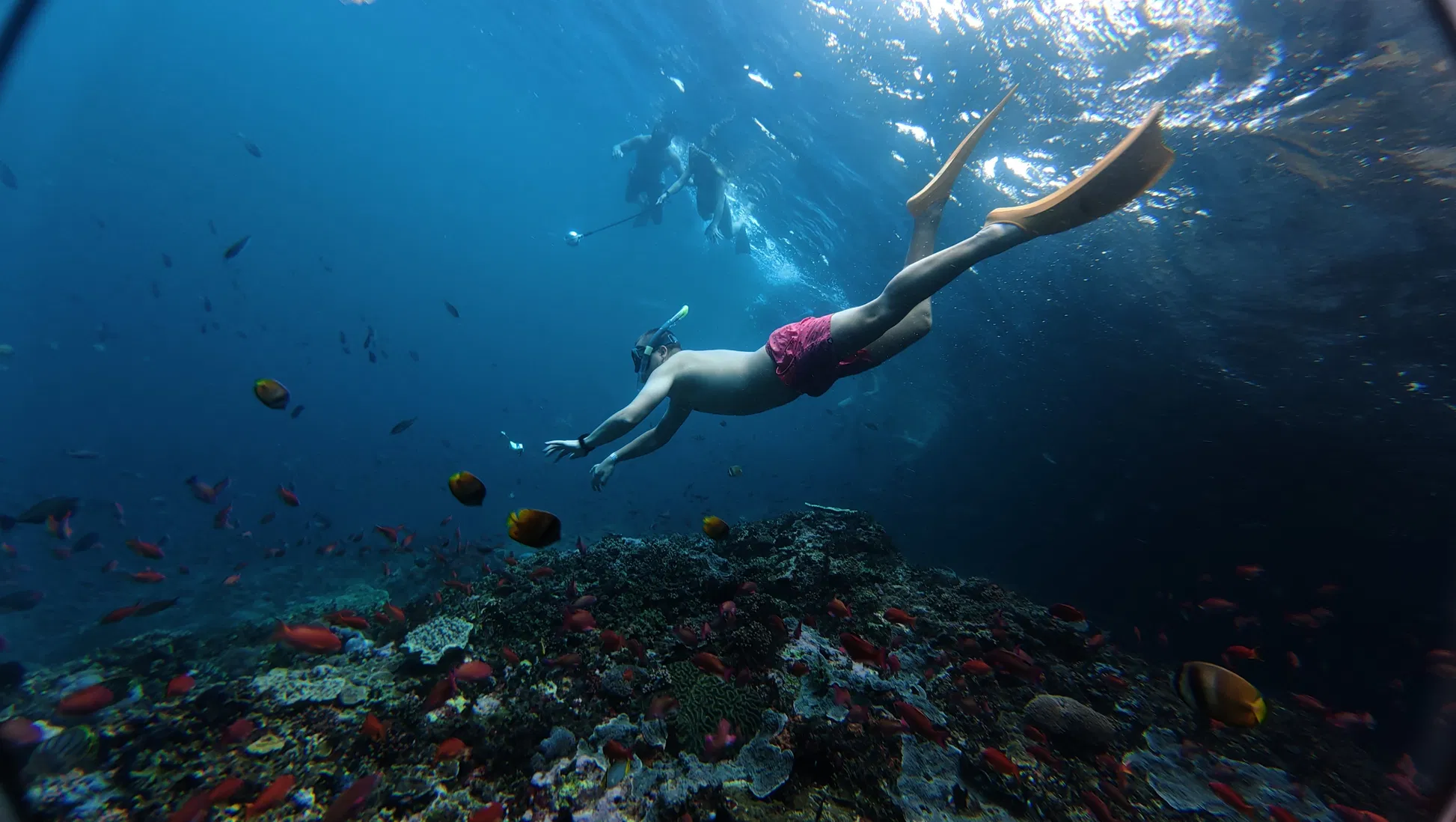 03. Coral Reef Discovery We then move to two additional world-class sites. Depending on the day’s visibility and currents, we’ll dive into Gamat Bay, Toyapakeh, or Crystal Bay. Here, you’ll encounter a kaleidoscope of tropical fish, healthy coral structures, and the occasional sea turtle.